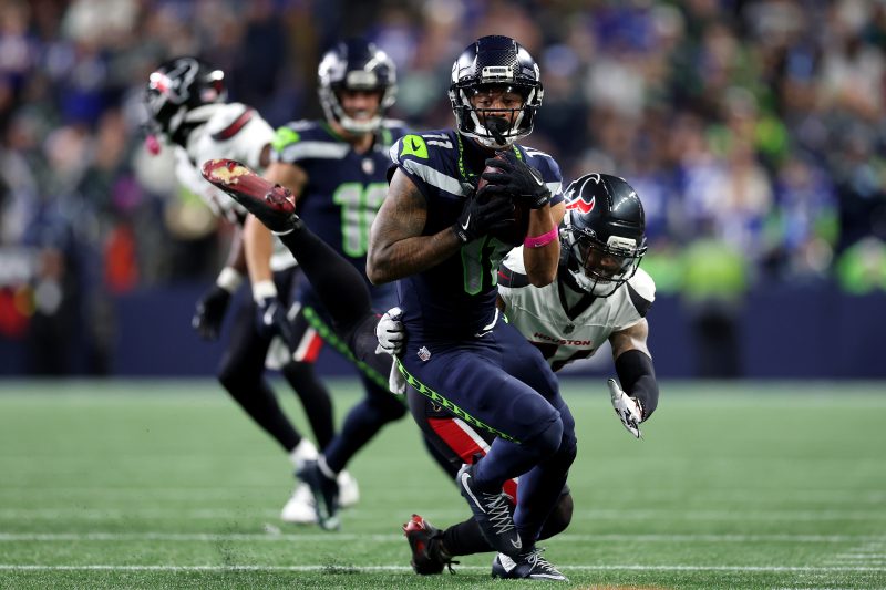 Seattle WR Jaxon Smith-Njigba added eight more catches, 123 yards and a TD to what’s shaping up as his first All-Pro effort. His 819 receiving yards lead the league and have him close to a 2,000-yard pace. JSN even had a guardian angel, field judge Nate Jones shielding him on Houston’s bench after a melee nearly broke out after CB Derek Stingley ripped Smith-Njigba’s helmet off after picking off a pass. His eventful night also included an illegal dunk over the crossbar following his TD … though former Seattle TE Jimmy Graham surely approves.